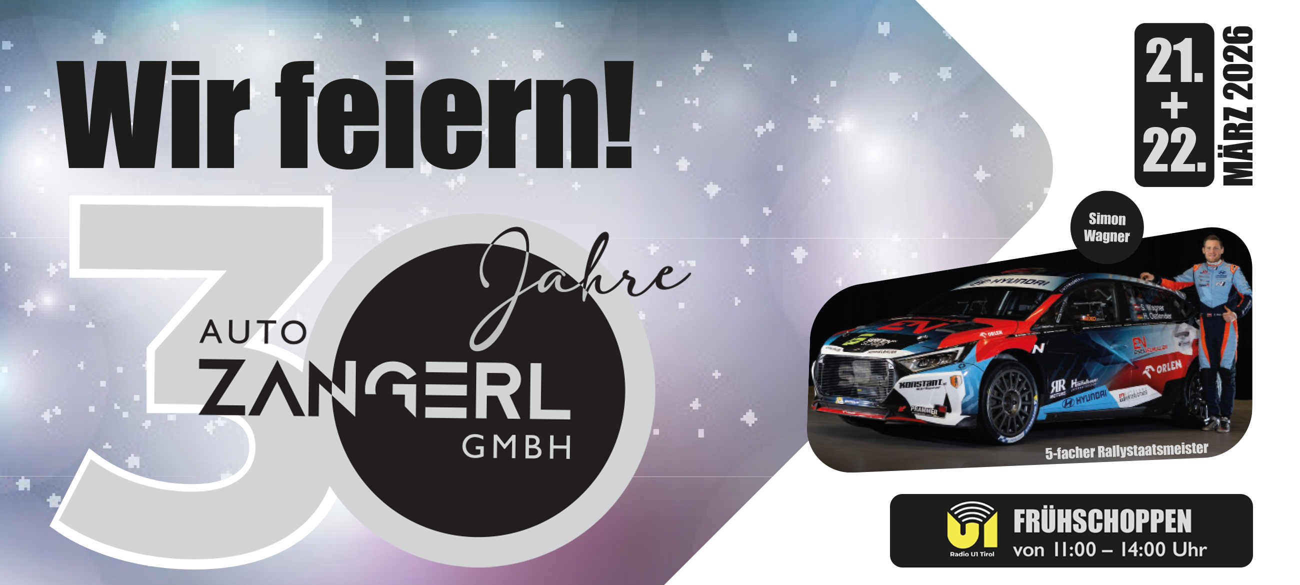 Drei Jahrzehnte. Unzählige Fahrzeuge. Noch mehr Kund*innen, Gespräche und gemeinsame Geschichten. Seit 30 Jahren steht Auto Zangerl im Tiroler Oberland für Handschlagqualität, persönliche Beratung und ehrliche Mobilität. Und genau das möchten wir mit euch feiern – mit einem großen Jubiläumswochenende voller Musik, Spaß und guter Stimmung. Am 21. & 22. März heißt es bei uns: vorbeikommen, feiern und genießen!